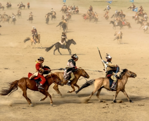 Petit-déjeuner. Départ pour la province d’Uvur Khangai, connue pour sa diversité naturelle. Laissant le Grand Gobi derrière vous, vous parcourrez les derniers kilomètres avant le massif du Khangaï. Pour les Mongols, le Khangaï fait référence à une région montagneuse aux ressources abondantes, où les animaux paissent tranquillement à l’abri du vent. Cette journée sera destinée à se familiariser avec la culture équestre de la Mongolie, le pays du cheval. Vous découvrirez dans la steppe d’Arvaikheer, le monument créé pour honorer les chevaux de courses légendaires. Ici viennent trouver protection les éleveurs et les entraîneurs de chevaux de courses. En Mongolie, gagner cette compétition est un grand honneur, et tous ceux qui espèrent remporter la victoire viennent ici pour prier. Déjeuner à Arvaikheer, chef-lieu de la province d’Uvur Khangai. Rencontre avec la famille de Lkhavgaa, éleveur de chevaux, qui habite au versant méridional de la chaîne de Khangai. Initiation aux activités liées à l’élevage de chevaux. Dîner. Nuit en yourte chez l’habitant.